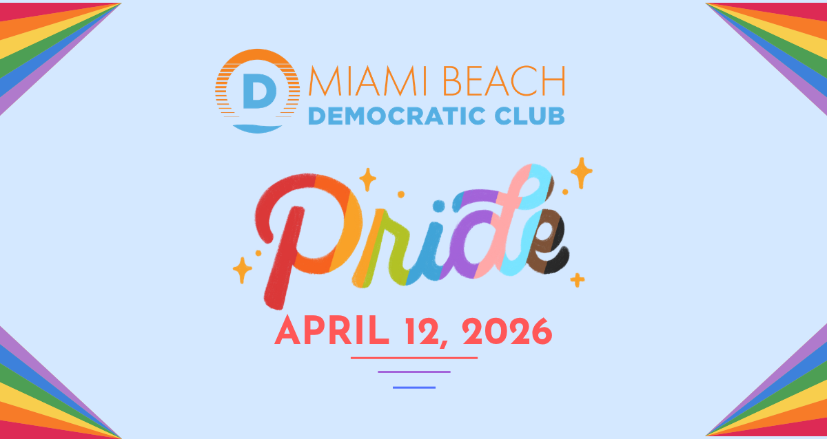 Join the Miami Beach Dems and participate in Miami Beach Pride 2026. If you are an MBDC Member, you can participate in the parade at no cost; however, Members and Non-Members can help to fund the Club’s participation in the parade by purchasing a sponsorship package or ticket.